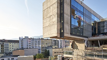 In Innsbruck entsteht ein neues, multifunktionales Stadtquartier namens DAS RAIQA, das im Auftrag der Raiffeisen-Landesbank Tirol AG von STRABAG realisiert wird. Das Projekt umfasst die Revitalisierung des ehemaligen "RLB-Turms", einem Gebäude aus den 1970er Jahren, das nicht abgerissen, sondern nachhaltig umgebaut wurde. Der Rückbau erfolgte bis auf das Stahlbetonskelett, und ein neues, gemischt genutztes Quartier entstand, in dem Kunst, Kultur, Geschäftsleben und Tourismus vereint sind. Ziel des Projekts ist es, möglichst viel bestehende Bausubstanz zu verwenden, um CO2-Emissionen zu reduzieren, die bei einem Neubau entstehen würden.